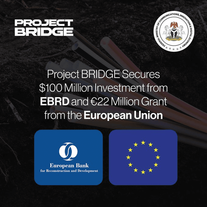 The latest piece of that funding puzzle is a $100 million commitment from the European Bank for Reconstruction and Development (EBRD), announced by Communications Minister Bosun Tijani after a two-week diplomatic push across six European countries to secure backing for Project BRIDGE.